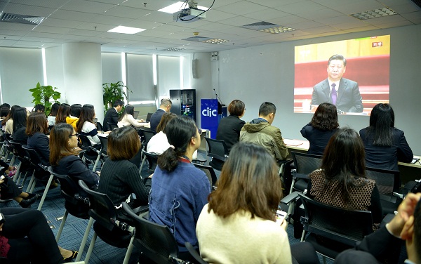 中智公司組織總部職能部門全體干部員工、女工委員、女工代表、在京分支機構班子成員及部門負責人、職工代表等百余人在公司總部多功能廳集中收看了實況直播。同時,中智公司在全國各地的所有分支機構積極落實組織全體員工認真收看大會直播。全體黨員干部員工身著正裝、佩戴黨徽,懷著激動和振奮的心情共同見證和回顧了改革開放40周年的偉大進程。慶祝大會國歌響起,奏響了改革開放40周年的輝煌序章,40年眾志成城,40年砥礪奮進,40年春風化雨,中國人民用雙手書寫了國家和民族發展的壯麗史詩。